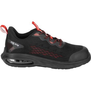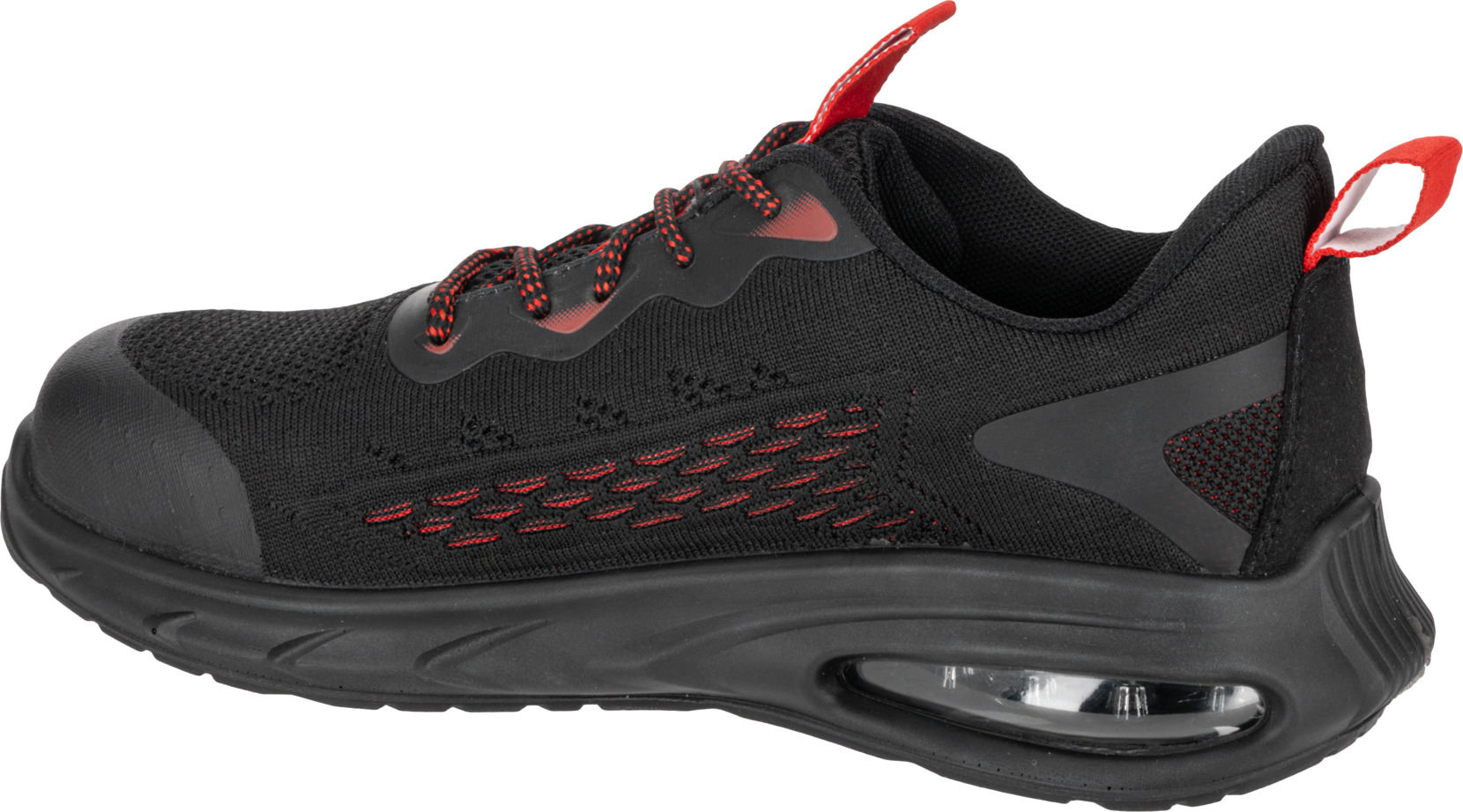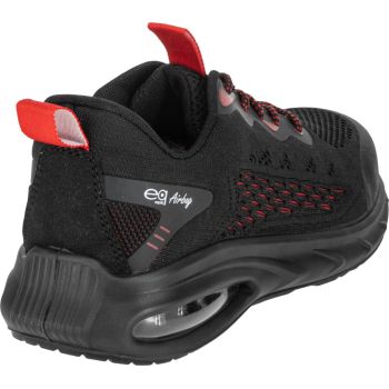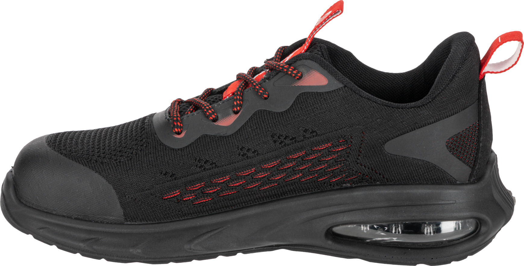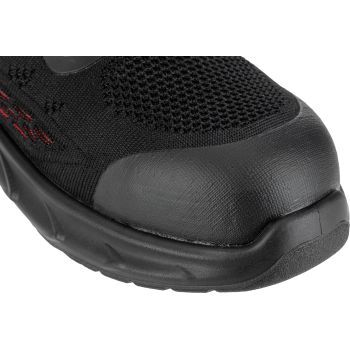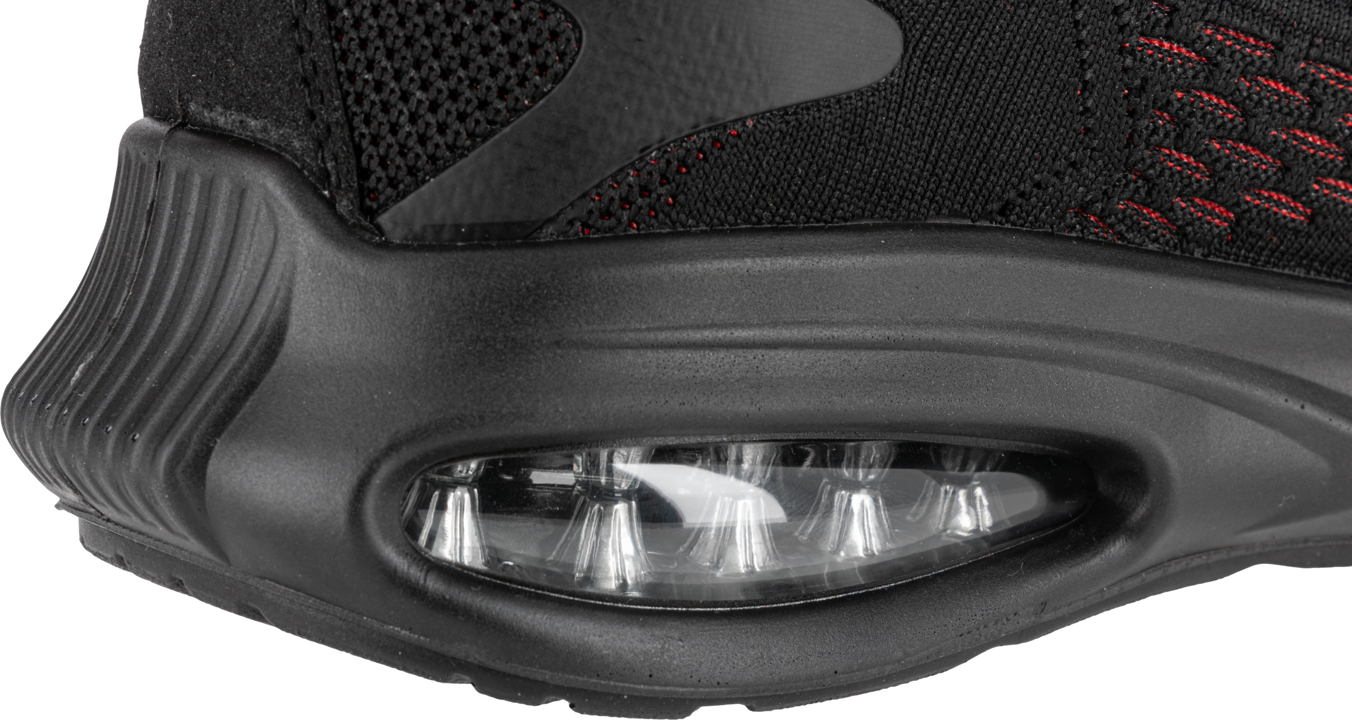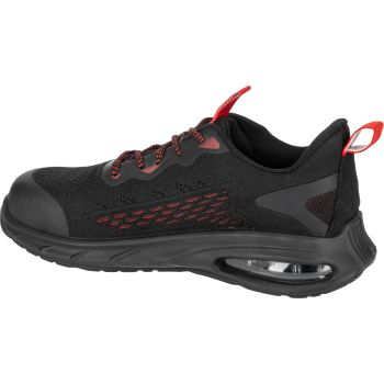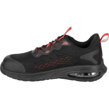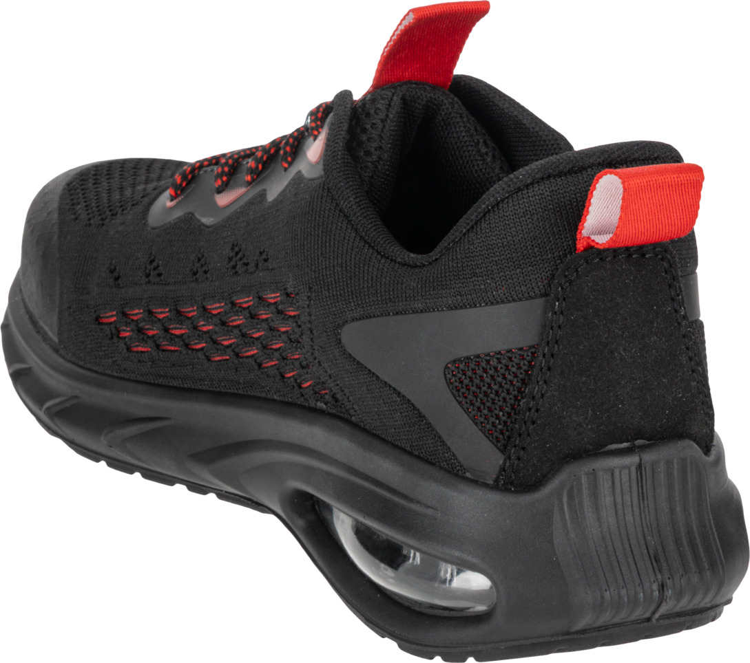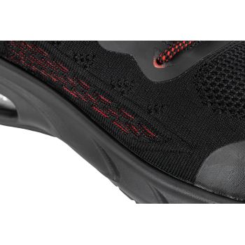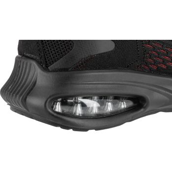 - MATERIAŁ: Wierzch: dzianina siatkowa 3D, zewnętrzna konstrukcja zwiększa cyrkulację powietrza wewnątrz obuwia, część przednia i tylna wzmocniona elastycznym i wytrzymałym tworzywem TPU. Podszewka: dzianina siatkowa. Wyściółka: wymienna, 10 mm grubości w części pięty, miękka i elastyczna. Podeszwa: poliuretan jednogęstościowy o właściwościach antypoślizgowych (podłoże z płytek ceramicznych pokryte gliceryną), odporna na olej napędowy, głęboki bieżnik zwiększa przyczepność do podłoża. Specjalna konstrukcja podeszwy, z wbudowaną w części pięty poduszką powietrzną Air Bag, tłumi wstrząsy i podnosi komfort użytkowania